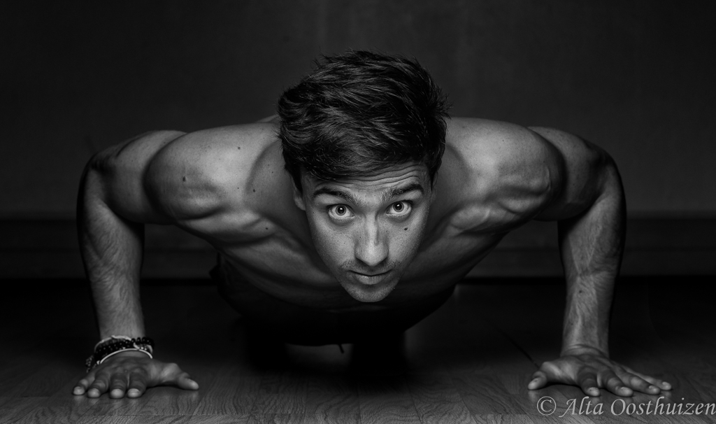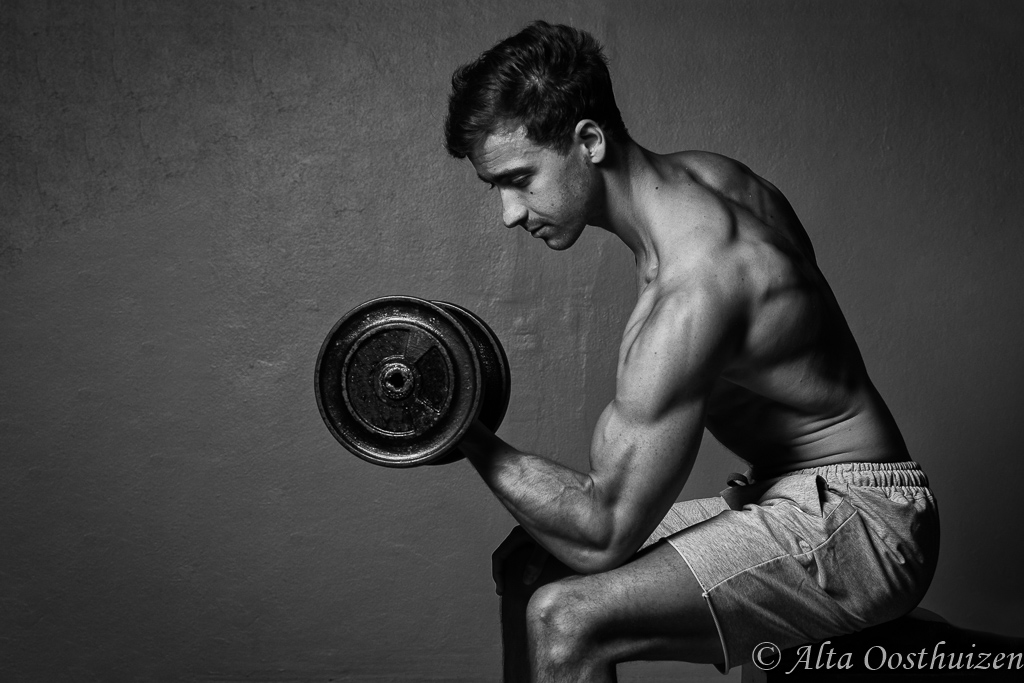 This is one genre that I have not explored much. An available model motivated me to get myself into gear and try something new. The main aim, my opinion, is to accentuate muscle definition. Lighting plays a vital role in this. Your model can be absolutely perfect, but if the light, especially the direction of the light is not correct, the images will have absolutely no impact. Generating shadows and highlighting the rim of the muscled arm, is I thought was necessary. Lighting from both sides, diagonally aimed at the model was the lighting setup I used the most! If you have your lighting setup right, all you have to do is to wait for your model to get the right pose, aim and shoot.